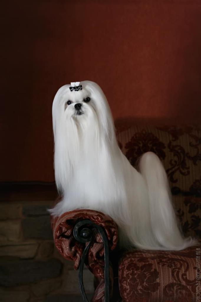 белой шерстью, очень элегантна, с гордой и утонченной посадкой головы.